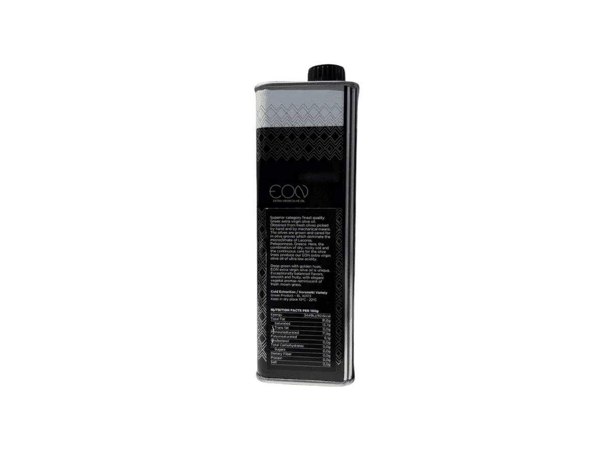 EON extra virgin olive oil is produced from carefully selected olives grown in Laconia, in the Peloponnese. This region benefits from a dry climate and rocky soils that naturally favor olive quality. Hand harvesting followed by mechanical extraction preserves the integrity of the fruit and results in an olive oil with very low acidity. This controlled process delivers a pure oil suited both for everyday use and refined Mediterranean cuisine.